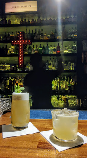 The vintage interior gives the space a unique and cozy vibe. The pizza was really tasty, and the cocktails were excellent.