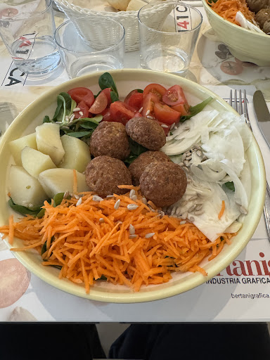 Vellutata buona, un qualche difetto sulla caprese (fette di pomodoro troppo grosse e troppo pomodoro rispetto alla grandezza della mozzarella, la mozzarella va tagliata e posata sulle fette di pomodoro, c'era peró l'origano che in alcune cucine non mettono, ma é fondamentale), verdure grigliate e Macedonia di frutta buone... Cameriere simpatiche, competenti e veloci... Prezzo da rivedere a mio parere (ci sono luoghi anche vicini che fanno il menù lavoratore a 12/13€ che danno primo, secondo e contorno acqua e caffé, qui a 11€ danno primo e secondo ma se vuoi altro lo...
