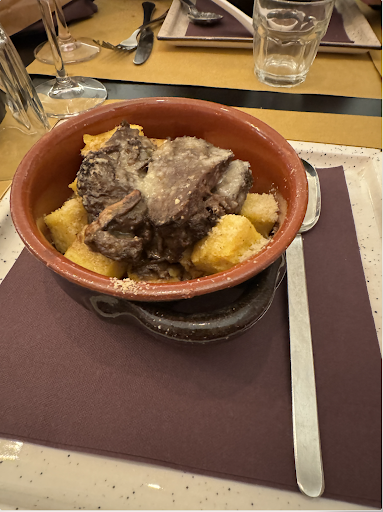 Read moreSiamo venuti a mangiare in questo ristorante credendo fosse un ambiente tipico, invece no, ma questo è il minimo: abbiamo chiesto informazioni su cosa fosse un piatto chiamato gnoccotechino, la cameriera ci ha spiegato e abbiamo detto ok grazie no, prendiamo un altro piatto. Ad un certo punto arriva con il gnoccotechino , le ricordiamo che alla fine avevamo scelto un altra cosa e la ragazza torna verso la cuoca e dopo poco iniziano a parlare di noi non rendendosi conto che sentivamo e sentiamo dire dalla cuoca: almeno la polenta la vogliono ? E poi continuavano a ridere e guardarci e parlare di nascosto. Parto dal presupposto che il fatto che la ragazza avesse capito che volevamo lo gnoccotechino per noi non è un problema, ma ridere tra di loro e dire frasi come almeno la polenta la vogliono ti fa capire che hanno scaricato la colpa a noi come se ci siamo inventati che non avevamo ordinato quel piatto. Ci siamo sentiti presi in giro a sentire ridere e parlare di noi, invece di chiedere "scusa" cosa che ripeto, non era un problema il fatto che si fosse sbagliata. Oltretutto ha iniziato a girare con questo gnoccotechino tagliato a pezzi offrendolo a tutti gli altri tavoli e a noi no! Ma sono contenta che non lo ha offerta anche a noi perché non mi ispirava per niente, sembrava una focaccia ripiena, però non è educato ma soprattutto sentirsi ridere e parlare alle spalle convinte di aver ragione e aver capito bene durante l'ordinazione. Mai più, piuttosto MC Donald's ! Comunque, cibo nella norma, non male per fortuna, almeno quello, ma niente...