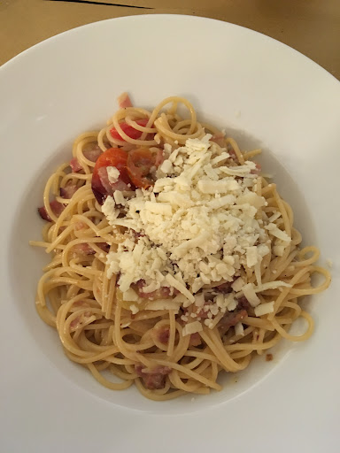 Started with bruschetta, which was amazing then on to our second plate. We had Tortellini Verdi with butter which was amazing, spaghetti with tomatoes, panchetta and parmesan was delicious yet a had little more salt than we are used too. Still finished the dish as it was delicious Finished with a coffee.