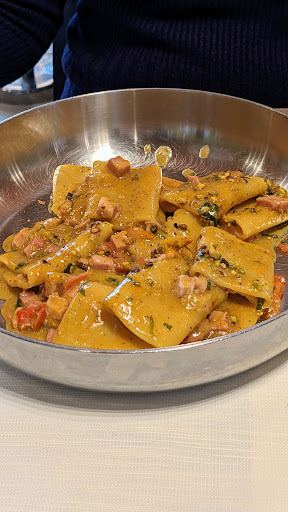 San Vantentino pranzo :quindi lunedì 14 febbraio Il posto non era stato scelto da noi ma da amici Non lo conoscevamo e non ci eravamo mai stati Ma è stata davvero una bellissima esperienza Il locale elegante e curato Il personale gentile, disponibile a venire iincontro ad ogni nostra richiesta Riguardante terra o mare e sopratutto non presenti nel menù o ancora meglio da dover modificare nel menu Siamo stati crollati e guidati in modo divino Allego le foto dell'antipasto di mare davvero spettacolare con accompagnamento di cipolla acetosa fantastica E un risotto delicatissimo che ancora ricordo il sapore Prezzo non solo grande qualità ma anche onesto prezzo Lo consigliamo io e il mio ragazzo Torneremo sicuro!!! Ho ancora troppi piatti da assaggiare e un mondo da conoscere Un messaggino per il ristorante : Continuate così, il cliente sa voi die sente amato e coccolato in...