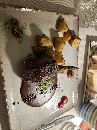 Read moreIo e il mio moroso abbiamo deciso di cenare presso questo ristorante, che da fuori sembrava interessante, in occasione del mio compleanno... Tavolo prenotato alle ore 21:00, arrivati puntuali entriamo ed aspettiamo all'entrata che qualcuno possa accoglierci o almeno chiederci se avessimo bisogno, ma niente, anzi ci passa davanti ben due volte una camerriera abbastanza innervosita che sbuffando se ne va senza manco calcolarci, alchè decidiamo di chiedere informazioni al bar, il quale ci accompagna ( dopo vari passaggi di parole con vari colleghi) al nostro tavolo... Dopo dieci minuti passano a prendere l'ordine, poi inizia l'attesa (minimo 25 minuti tra una portata e l'altra)... Antipasto: piatti molto curati ed accettabili al palato.. Primi: risotto ai mirtilli immangiabile perchè troppo salato, e gnocchi di patate con crema molto acquosa... Secondi? meglio non commentare dopo 45 minuti che aspettavamo che ci venissero a prendere i piatti, stufi abbiamo deciso di andarcene , arriviamo alla cassa, facciamo presente che il risotto era molto salato e che non avevamo preso il secondo e il Signore ci risponde che aveva notato che il servizio era stato pure molto lento!!! una vera è propria presa in giro per poi pagare un conto di 50,00€...