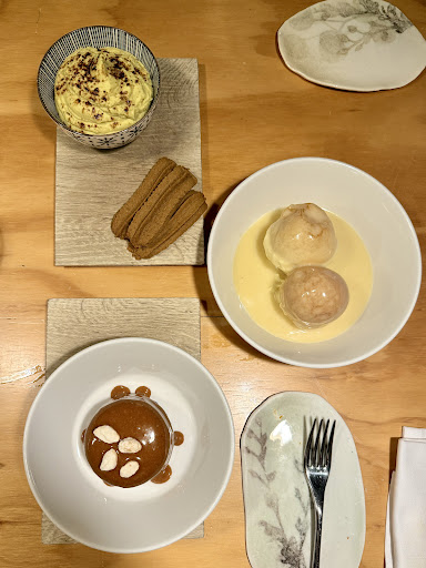 Read morequesta foto è del 19 dicembre, ossia il giorno del mio compleanno e fino adesso non sono mai riuscita a postarla a causa del tempo che non avevo, ma nonostante ciò mi ricordo come fosse ieri il sapore di queste meravigliose prelibatezze. allora diciamo che non è stato al top un tre su tre, ma due su tre perché abbiamo deciso appunto di prendere ognuno un dolce diverso di quelli che ci ispiravano di più e dividerli e solo uno veramente era stracciato, ma gli altri due erano così superlativi che quasi ti scordavi di quello difettoso😂 partiamo subito da quello negativo, ossia il profiterole farcito con crema allo zabaione e ricoperto da cioccolato bianco. È stata davvero una grande delusione perché mi aspettavo un qualcosa di magico invece la pasta del bignè era secca e gommosa purtroppo è diventava una gomma da masticare sotto i denti… la crema invece era anche molto buona con anche quel leggero tocco alcolico, ma non è stata così all’altezza da risolvere il grande problema del contenuto principale. Per quanto riguarda invece quelli paradisiaci, parliamo di Crema al mascarpone al caffè servita con biscotti crumiri al cacao e semifreddo al arachide salato ricoperto di cioccolato e caramello salato.. il mascarpone era una nuvola e il succo di caffè era dosato alla perfezione senza essere troppo invadente e si sposava benissimo con i biscottini che erano belli cotti e croccanti in modo da fare il contrasto con la crema spumosa. Invece il semifreddo sembrava davvero di mangiare un gelato al burro di arachidi e insieme alla copertura di cioccolato e la glassa di caramello salato era un’esplosione di sapori senza essere eccessivamente dolce. purtroppo, non sono riuscita a fare le foto degli antipasti perché avevo troppa fame🤣erano le polpette al sugo e dei primi, ovvero i cappelletti con panna di cardi e tartufo, ma erano...