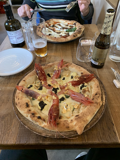 Andato in questo locale a pranzo , essendo un ristorante/pizzeria da come avevo avuto il modo di vedere precedentemente sui social, decido appunto di prendere una pizza. Locale molto bello,moderno ed elegante. Personale di sala nulla da dire (un po’ meno quello in cassa ma vabe..) . Purtroppo peró arrivata la pizza , lascio passare il fatto che fosse completamente bruciata sotto in quanto capisco che possa succedere anche se penso che comunque in questo caso la bruciatura fosse veramente tanta e forse al tavolo non doveva arrivare, tralasciando questo io sono convinto che in questo locale non sia presente una pizzeria, un impasto proprio e un pizzaiolo. Mi spiego meglio , sono convinto assaggiandola e guardandola che quella non sia una pizza fatta al momento, ma una base precotta rigenerata al momento che,ci puo anche stare se magari detto, e sopratutto se fatto in un certo modo (con una cottura cosi è rimasta crudo in mezzo e bruciata sotto) e non passare per una tradizionale pizza napoletana. Tutto questo non puo’ giustificare i 12/15 euro a pizza o addirittura i 92 euro per la pizza speciale del menu. Nota veramente di merito per gli ingrendienti, tanta tanta roba. Penso che siano molto bravi a cucinare e che usino ottimi prodotti anche vedendo il lato ristorante ma penso che sul lato pizzeria ci sia da...