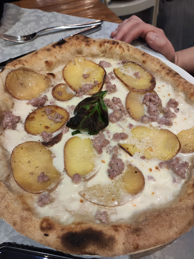 Read moreRistorante pizzeria che raffigura esattamente Napoli nei suoi migliori sapori! Con la mia fidanzata abbiamo preso come antipasto un fritto misto napoletano veramente squisito! Calzoni, crocchette, tutto buonissimo!!! Io ho mangiato la pizza speciale Barba del Frate con gamberetti al curry saltati in padella, straccetti di bufala e crema di asparagi con anche asparagi interi ed ovviamente doppio impasto! Pizza fantastica!!! Bella alta proprio come la vera pizza napoletana e la cosa migliore in assoluto é l'impasto che nonostante fosse alto e pieno era leggerissimo!!!!! Me la sono gustata fino all'ultimo morso! Leggera, buona, alta e ricchissima con i suoi condimenti! Sapori ben bilanciati e di prima qualità! La mia fidanzata ha mangiato la pizza speciale Tartufata impasto ai 10 cereali! Impasti lievitati bene e anche quest'ultima pizza ricca di sapori ben bilanciati! Come dessert abbiamo preso il tiramisù al pistacchio e fragole... Qui ho da ridire qualcosina. Dessert buono, ma carente nel sapore del pistacchio. Di questo aveva solo un pochino di granella in superficie e quindi il sapore praticamente inesistente, mentre, tra uno strato e l'altro tra i savoiardi é presente un sottile strato di topping alle fragole. Per migliorare questo aspetto del pistacchio io proverei ad aggiungere un po' di crema di questo tra uno strato e l'altro del tiramisù così come hanno fatto con il topping di fragole. In ultimo, accoglienza informale, locale accogliente e ben arredato con qualche pianta verde ai lati della sala per smorzare le tovaglie bianche. Illuminazione sufficiente con un effetto quasi soffuso per riprendere uno stile caldo. Camerieri attenti e simpatici e servizio molto veloce ed elegante. Prezzo complessivo per una coca zero, una birra rossa in bottiglia, 2 pizze speciali più 2 dessert, caffè e coperto 30€ a testa. Prezzo giusto per la qualità del cibo e del locale. Consigliato!!! (Vedere le foto in allegato)
