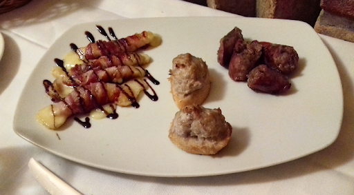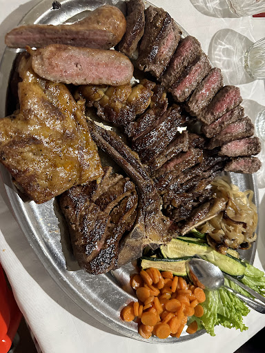 Read morePremetto che se qualcuno vuole andare in questo locale, gli deve piacere la carne. L'ambiente è molto rustico. Il locale è accogliente, i tavoli sono distribuiti in modo corretto, c'è la distesa esterna e interna. Il locale contiene più sale. I bagni, personalmente, non mi piacciono perchè sono vecchi e sembrano sporchi (anche se sicuramente non è vero in quanto questa impressione è dovuta all'usura), io li rinnoverei. Il menù non è alla carta, ma ci sono dei menù fissi e tutto il tavolo deve concordare un solo menù (se si desiderano modificazioni o richieste particolari, è possibile comunicarlo al cameriere). I tempi di attesa tra una portata e l'altra sono un pochino lunghi. Il rapporto tra qualità-prezzo è molto esatto perchè la carne è BUONISSIMA ed ha qualità. La carne ha un sapore divino ed è molto tenera. La loro specialità è cucinarla al sangue. Una cosa che non mi è piaciuta molto è che una delle cameriere stava masticando un chewing gum mentre lavorava. I menù, per quanto mi riguarda, hanno troppe portate. Mi spiego meglio: ci dovrebbe essere una portata che includa assaggi di antipasti caldi ed una che includa antipasti freddi (crudités di carne) invece di tante portate di crudités di carne perchè una persona arriva a fine pasto che scoppia. Nonostante tutto, il locale mi ha fatto una buona impressione e...