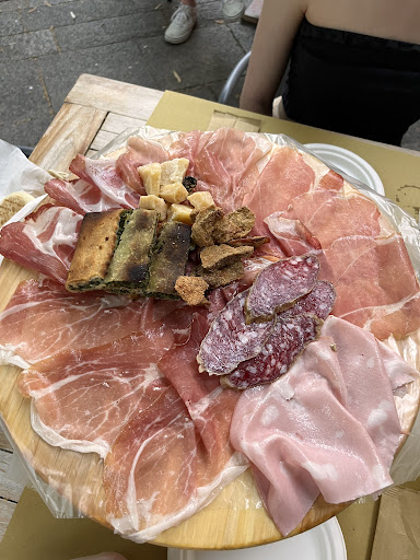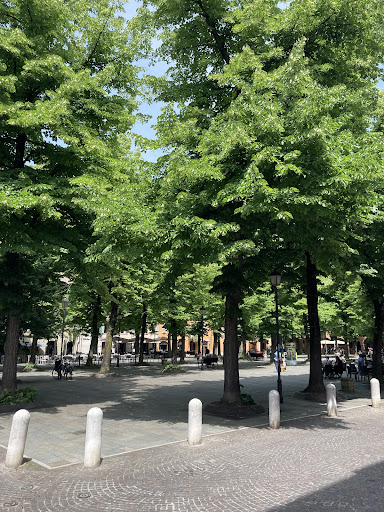 Read moreSostato qui in una piacevole domenica di grande sole a Reggio Emilia. Il tavolino in Piazza Fontanesi è una bellezza per gli occhi e per la mente: l’ombra gettata dagli alberi protegge dal sole, i bambini e le famiglie giocano, c’è tranquillità nonostante l’affollamento. Abbiamo ordinato un tagliere di salumi e formaggi per tre persone (22€), tre pezzi di erbazzone (2€/uno), 12 tigelle (0,50€/una) e due bottiglie d’acqua. L’erbazzone era strepitoso, mangiato a stomaco vuoto mi ha dato la sensazione di volare; anche il tagliere, apprezzato sì per i salumi ma anche di più per la ricercata scelta di formaggi. Il tutto accompagnato da tigelle calde - per un’esperienza completa. Purtroppo dovevamo guidare e non abbiamo potuto sorseggiare uno dei tanti vini proposti. I camerieri sono stati bravissimi, molto gentili, alla mano ma professionali. Il totale era di circa 39/40€, compreso di due caffè. Se passate a Reggio Emilia, una tappa caldamente consigliata; io di sicuro...