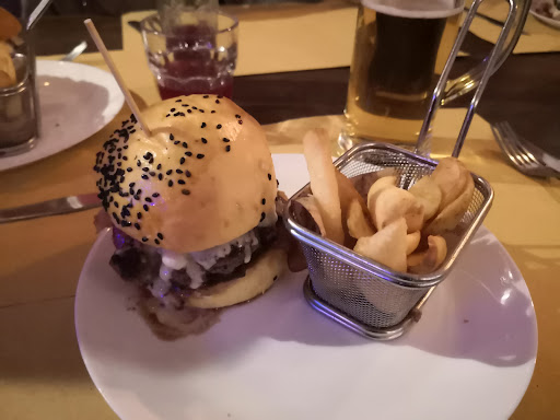 Il cibo è ottimo la birra pure. Anche se devo dire che non mi è piaciuto il trattamento. sono andato insieme alla mia compagna sotto consiglio di un mio collega di lavoro, non avevo prenotato ma al mio arrivo comunque c'erano diversi tavoli per due liberi... la cameriera Però giustamente ci ha detto che i tavoli erano tutti prenotati e ci ha chiesto se volevamo accomodarci sulle panche a lato dell'ingresso... siccome dovevamo mangiare giusto un paio di hamburger e bere due birre ho chiesto almeno un paio di volte alle cameriere di poter essere spostato punto in uno di questi tavoli che a mio avviso potevano tranquillamente darci Dato che per tutto il tempo in cui abbiamo mangiato sono comunque rimasti liberi... la risposta è sempre stata che erano comunque prenotati e già stati girati ad altri clienti. Va bene... Ci può stare... panini e birra arrivati a tempo record e davvero buoni... siccome avevamo ancora un po' di tempo la cameriera ci ha proposto se volevamo un dolce... ordinato due dolci con il preavviso che ci volevano almeno una decina di minuti per l'arrivo, Purtroppo però dopo 25 minuti è un paio di nuove richieste per l arrivo di essi spazientito poiché avevo un impegno per il dopo serata mi sono alzato e poi ho preferito andare alla cassa a pagare facendo notare queste due cose al signore che era la cassa sia il fatto dei tavolo che il discorso dei dolci... consiglio vivamente a tutti locale per il cibo perché l'hamburger era veramente squisito e la birra non da meno... ma con il servizio io personalmente non mi sono trovato bene... se c'è mancanza di posto preferisco che all'ingresso mi venga detto "no non abbiamo posto"... e non essere buttato a un lato del locale di fronte alla porta Lo spiffero d'aria infastidisce...