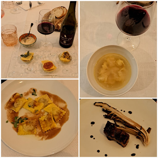 Provato ieri sera con due amici ed è stata davvero una piacevolissima scoperta. Abbiamo optato per il menu Tortellomania con ben 6 tipi (verdi, zucca con soffritto, patate con salsa ai porcini, d'anatra in pasta di cacao accompagnati da fonduta di parmigiano e riduzione di lambrusco, di ricotta tartufata con tuorlo d’uovo marinato e infine ravioli di brasato accompagnati dal loro fondo) con possibilità di un bis (ma purtroppo non ce l'abbiamo fatta perché a ogni giro c'erano 4 tortelli a testa quindi ero già a quasi 30 tortelli, visto che un amico non è riuscito a tenere il ritmo già al quarto giro...) poi dolce (e sorprendente) conclusione con altri 8 tortelli (4 in pasta gialla ripieni di crema pasticcera e 4 pasta di cacao ripieni di cioccolato bianco, entrambi saltati nel burro alla vaniglia). Tutti, ma veramente tutti, assolutamente squisiti. Un unico piccolo appunto, la scolatura non sempre perfetto con il condimento in alcuni casi un po' troppo acquoso. Però davvero veramente complimenti per tutte le varietà a partire da quelli verdi, che sono i più classici e dunque i più insidiosi ed è da proprio da questi particolari (parafrasando De Gregori) che si giudica... uno chef. Hanno impreziosito la cena 3 piccole attenzioni offerte dalla casa: burro salato con pane caldo e crema di anacardi fermentati con polvere di cacao in avvio, un altrettanto sorprendente (e straordinario anche in questo caso) sorbetto al lambrusco. Servizio davvero cortese e professionale da parte dei due giovani addetti (una ragazza e un ragazzo) e ambiente piccolo ma molto confortevole, quasi elegante (si cena a lume di candela), con poltrone molto comode. Assegno 'solo' 4 stelle all'ambiente per due piccole pecche: ieri sera diluviava e all'ingresso non guasterebbe un tappeto, causa anche le dimensioni (abbastanza ristrette) l'accesso ai bagni non è del tutto protetto allo sguardo dell'ultimo tavolo (ma i bagni sono assolutamente puliti e confortevoli, con una nota di merito per le salviettine in spugna che per me rappresentano sempre un valore aggiunto). Conto senza sorprese con piccolo sconto di arrotondamento (da 122 a 120) per 40 euro tondi a testa considerando il menu fisso a 25 euro, 2 bottiglie di Chianti, 1 di acqua e il coperto (lo scontrino della foto è relativo a 2 persone). Assolutamente corretti anche i prezzi dei singoli piatti e carta dei vini non insidiosa (da 18-20 euro in su, con anche prezzi più bassi se si sceglie lambrusco). In conclusione: davvero complimenti alla giovane brigata, sarà un vero...