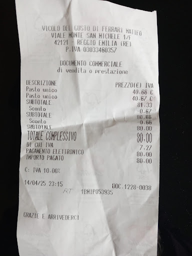 In sintesi, la mia esperienza al Vicolo del Gusto è stata estremamente positiva. La qualità del cibo, la cortesia del personale e l’ambiente raffinato hanno contribuito a rendere questo pranzo indimenticabile. È un ristorante che consiglio vivamente e in cui tornerei...