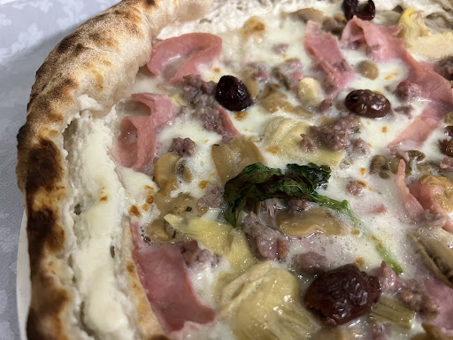 Read moreRistorante pizzeria che raffigura esattamente Napoli nei suoi migliori sapori! Con la mia fidanzata abbiamo preso come antipasto un fritto misto napoletano veramente squisito! Calzoni, crocchette, tutto buonissimo!!! Io ho mangiato la pizza speciale Barba del Frate con gamberetti al curry saltati in padella, straccetti di bufala e crema di asparagi con anche asparagi interi ed ovviamente doppio impasto! Pizza fantastica!!! Bella alta proprio come la vera pizza napoletana e la cosa migliore in assoluto é l'impasto che nonostante fosse alto e pieno era leggerissimo!!!!! Me la sono gustata fino all'ultimo morso! Leggera, buona, alta e ricchissima con i suoi condimenti! Sapori ben bilanciati e di prima qualità! La mia fidanzata ha mangiato la pizza speciale Tartufata impasto ai 10 cereali! Impasti lievitati bene e anche quest'ultima pizza ricca di sapori ben bilanciati! Come dessert abbiamo preso il tiramisù al pistacchio e fragole... Qui ho da ridire qualcosina. Dessert buono, ma carente nel sapore del pistacchio. Di questo aveva solo un pochino di granella in superficie e quindi il sapore praticamente inesistente, mentre, tra uno strato e l'altro tra i savoiardi é presente un sottile strato di topping alle fragole. Per migliorare questo aspetto del pistacchio io proverei ad aggiungere un po' di crema di questo tra uno strato e l'altro del tiramisù così come hanno fatto con il topping di fragole. In ultimo, accoglienza informale, locale accogliente e ben arredato con qualche pianta verde ai lati della sala per smorzare le tovaglie bianche. Illuminazione sufficiente con un effetto quasi soffuso per riprendere uno stile caldo. Camerieri attenti e simpatici e servizio molto veloce ed elegante. Prezzo complessivo per una coca zero, una birra rossa in bottiglia, 2 pizze speciali più 2 dessert, caffè e coperto 30€ a testa. Prezzo giusto per la qualità del cibo e del locale. Consigliato!!! (Vedere le foto in allegato)