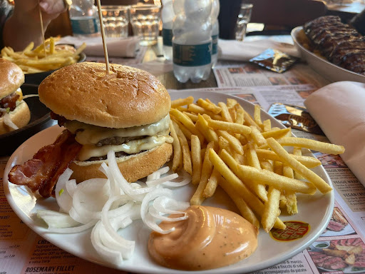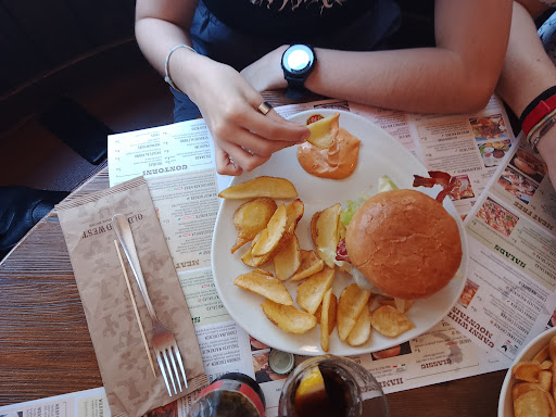 Read moreAbbiamo mangiato a pranzo in quattro. L' ambiente è carino, rustico stile western. Pulito, ma si è costretti a fare lo slalom tra i tavoli. Purtroppo non ci sono accorgimenti per l'abbattimento delle barriere architettoniche. Difficoltà non solo per i diversamente abili, ma anche una famiglia con passeggino avrebbe problemi. Menu dozzinale, niente di eccezionale o nuovo, i soliti panini. Personale non giudicabile, non si capisce se sono contenti di avere clienti o se diano fastidio. Solo il cassiere era gentile, certo con quello che abbiamo pagato. Qualità del cibo non all' altezza del prezzo. Il pane dei panini si sbriciolava in mano, salse messe col contagocce, quantità di patatine ridicola, qualità della carne nella media, ma per quel prezzo mi aspettavo qualcosa di più. Tempi di attesa nella norma, ma eravamo solo noi e un altra famiglia. Il locale si è riempito dopo. Il prezzo è un po' alto, IMHO, per la QUALITÀ e quantità ricevuto. Una cosa che personalmente ritengo oltraggioso è il pagamento del coperto (IMHO inesistente), pagato 1,70€ (!!!!!) a persona, ma si tratta del menù (fatto di carta) usata come tovaglietta e le posate dentro la solita busta con tovagliolo. Niente tovaglia sul tavolo, ne tovaglioli di carta. Io personalmente e tutta la famiglia siamo rimasti delusi, persino mia figlia che adora normalmente questi cibi.
