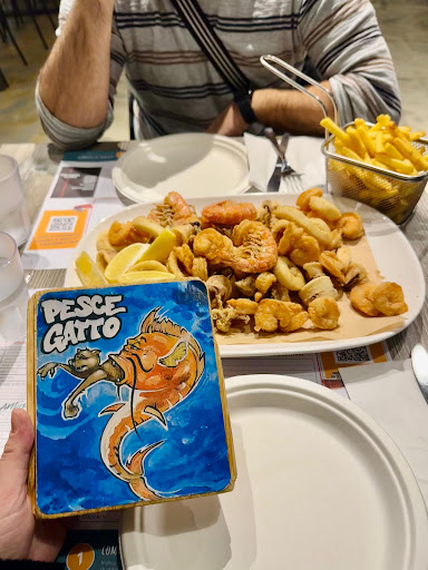Un dettaglio che rende l’esperienza ancora più particolare è il sistema di servizio: quando arrivi, ti viene consegnato un piccolo “totem” con l’immagine di un pesce diverso per ogni tavolo. Quando i tuoi piatti sono pronti, il nome del tuo pesce viene chiamato e devi alzarti a ritirarli direttamente dalla cucina a vista, che si affaccia sulla sala. Un’idea originale che rende tutto ancora più dinamico e coinvolgente! L’atmosfera è sempre divertente e accogliente, perfetta sia per una cena romantica che per un pranzo tra amici o in famiglia. Il servizio è impeccabile: il personale simpatico e giovane ma sempre professionale, cortese e sempre pronto a consigliare.