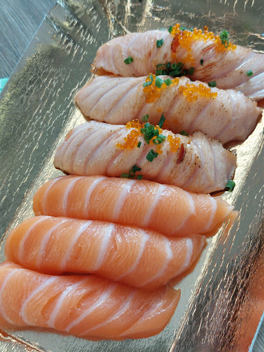 Si tratta di un ristorante di cucina giapponese con annesso piccolo market di prodotti asiatici, per lo più sempre giapponesi. Attenzione: le luci interne sono basse, da fuori, nelle ore diurne, potrebbe sembrare chiuso ma avvicinatevi perché non è così. Visitato a pranzo in settimana lo abbiamo trovato gradevole, anche se eravamo gli unici clienti (ha aperto da pochissimo). Ci ha colpiti subito la gentilezza e disponibilità della signora che ci ha serviti, credo la proprietaria. Menù fisso in diverse versioni oppure scelta alla carta. Il menù è il classico da sushi quindi con nigiri, maki in tutte le versioni, chirashi, tartare e le immancabili poke. Abbiamo provato degli uramaki al salmone,in diverse versioni. Quelli più semplici, con avocado o i california niente di eccezionale mentre quelli più elaborati, spicy, buonissimi ! Anche il sashimi di salmone, un po' troppo freddo, ma lasciato riposare qualche minuto si scioglieva in bocca, ottimo. La proprietaria molto gentile, come regalo di benvenuto, ci ha anche offerto dei nigiri di cui uno con salmone scottato alla griglia (veramente buono, complimenti!) e del mango per chiudere il pranzo. C'è anche la possibilità di farsi consegnare a casa ordinando dal sito. Lo proveremo sicuramente. Confermo che il cibo viene servito su vassoietti e tutto il materiale, dalle bacchette alle vaschette per il wasabi e la soia, sono usa e getta ma onestamente non ci trovo nulla di male se così facendo non si paga il coperto. Meglio investire sulla qualità del...