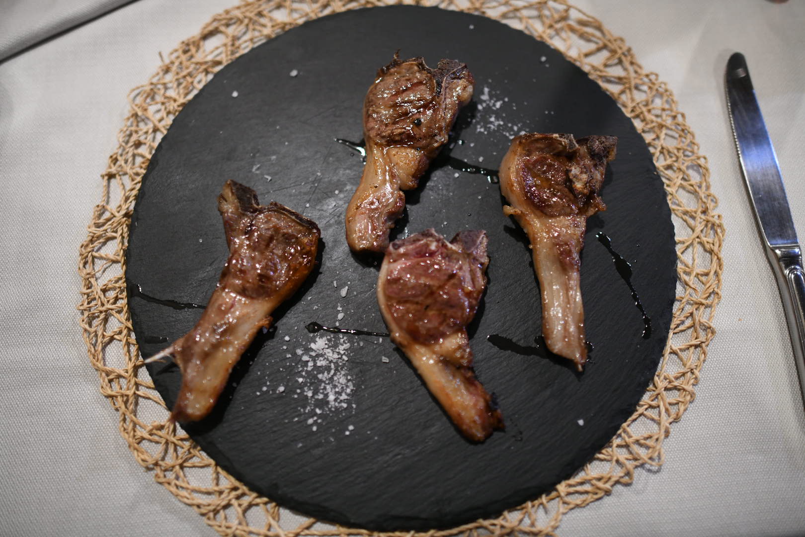 Read more79 € x due tagliate, un contorno di ottime patate e uno di carciofi alla giudia altrettanto buoni. La mia ragazza la ordina ben cotta. Riceve un piatto scarno con bocconi sparsi anche troppo cotti che sembrano provenire da scarti di altri tagli. Io la ordino al sangue e ricevo una giusta pezzatura di carne fredda e non particolarmente buona come i 20 euro che costa farebbero supporre. La mia ragazza è però fortunata perché i quattro capelli che trova nel piatto le valgono la celere sostituzione a favore di una porzione normale e dall'aspetto finalmente decente. A me è andata meno bene, essendosi accorti che stavo aspettando la sostituzione del piatto si offrono di "tenere in caldo" la mia tagliata che mi torna calda ma non più al sangue... Ingiustificabili i 15 euro del vino in bottiglia, una falanghina quasi tossica che ci distrugge la serata con la tipica ubriacatura da pessimo vino di sofisticata memoria seguita da un mal di testa immediato e poi durato tutta la notte. Peccato, la volta precedente era...