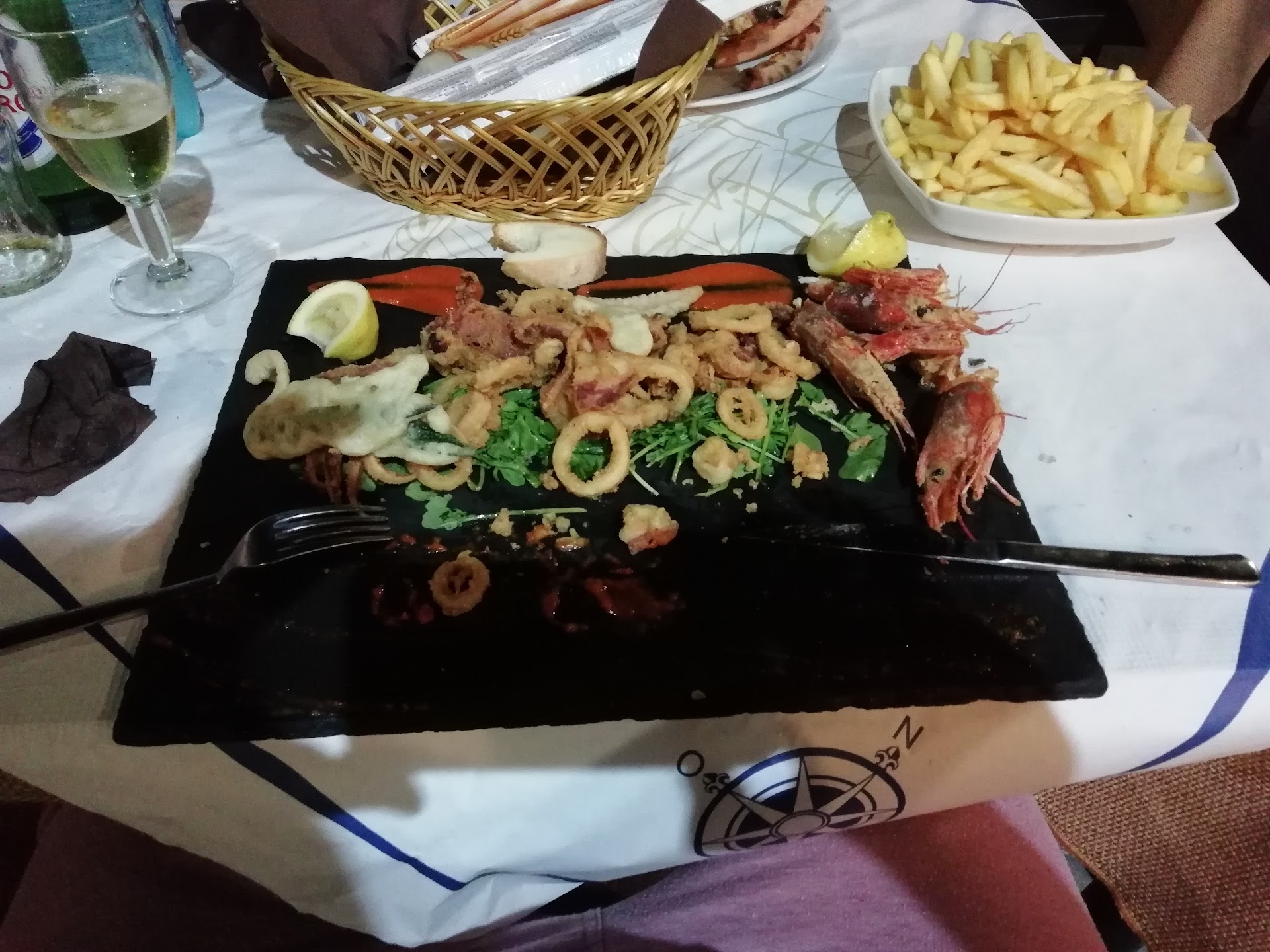 A dissapointing experience. I went for lunch and they do not serve pizza at lunch, only at supper. Not all the items on the lunch menu were available because they were missing certain ingredients therefore the selection became more limited. I ordered a breaded chicken breast because I cannot eat fish or seafood, and half of my chicken was still raw and I could not eat it. The waiter brought no condiments to go with my French fries despite the fact that there was a table with all the condiments on it near the entrance door. He brought a basket of bread but again did not bring any oil to go with it which was also on the condiment table. When I showed the owner that my chicken was raw he discounted just the chicken but charged me €5 for the fries that were on the plate which weren't even a handful of fries. And he even went so far as to charge me for my coffee, which normally is included with the meal; however, even if it wasn't included, after being served raw chicken one would think that as a courtesy it would have been included. I would not recommend going here and I will never be going...