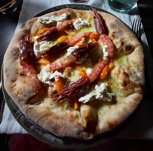Un posto davvero notevole. Prenotiamo per una sera, perché non avremmo potuto arrivare in tempo alla cena in albergo. Un ristorante con una vista magnifica, mare e montagna. Tavoli distanziati: con la coda che hanno, probabilmente significa rinunciare a tanti soldi per tutelare la salute di clienti e dipendenti... Ordiniamo le pizze. C'è da aspettare un po'. E loro ti portano la birra coi boccali tirati fuori dal freezer, in modo che resti fredda più a lungo. Di nuovo una scelta che tutela il cliente. (Alzi la mano chi non ha mai ordinato la seconda birra perché la prima era diventata calda e non si poteva più bere.) Ma il... piatto forte è il cibo! La pizza ha un impasto straordinario. Fragrante, croccante sotto e morbido sopra! E quello che ci mettono sopra è di ottima qualità. Anche se la pizza è abbondante, ti accorgi che vai piano per paura che finisca (!). Primi e secondi li ho solo visti passare; ma le facce dei clienti erano decisamente soddisfatte. Invece, del tiramisù ho una testimonianza di prima mano: ed è promosso a pieni voti. Un'ultima osservazione sui camerieri, determinante per la concessione della quinta stellina: i ragazzi sono beneducati e corrono. Ed il capo cameriere è spiritoso, e sa cavarsi d'impaccio senza mai cadute di stile. Una cliente ha chiesto una pizza poco cotta, ma con la cipolla ben cotta. Col mare di gente in attesa, avevo paura di cosa potesse rispondere. Lui invece se l'è cavata con una battuta carina, che ha fatto ridere per prima la signora che aveva fatto la richiesta "impossibile". Insomma: attenti, carini, in un bel posto, e con una pizza stratosferica. In più, il conto non riserva brutte sorprese: la richiesta di danaro è più che onesta. Se non concediamo le 5 stelline a loro, a chi...