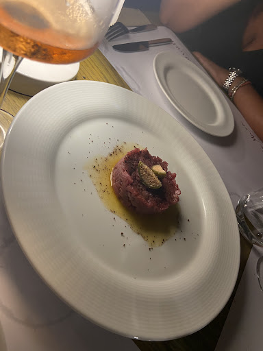 Read moreDopo essermi documentata su questo locale, sono venuta a cena. Sulla struttura nulla da dire, ma il sistema di ventilazione lasciava molto a desiderare, purtroppo abbiamo cambiato il tavolo assegnatoci, perché le luci emanavano troppo caldo, ma al secondo tavolo della seconda sala, la situazione era migliorata poco. Tavolo con poca luce, ho chiesto una lampada da tavolo, che non è arrivata, tovagliette semipelli e posate avvolte in un tovagliolo di carta, insomma la mise EN Place molto deludente, Il personale di sala al 90% straniero, gentile ed attento, assunto per la stagione estiva, senza le basi professionali che ci si aspettava. Ci viene servito nell'attesa pane ed olio, bottiglia vuota, che ho fatto sostituire. Assaggiato era buono e delicato. Dopo una ventina di minuti, ci servono i primi: linguine con ragù di polpo su burrata e spaghetti con alici e mollica, porzioni non abbondanti ma buone e cucinate bene. Dopo altri 15 Min ci servono i secondi: millefoglie di bandiera con melanzana e pomodoro e frittura di pesce: la millefoglie, un cubotto su un fondo di passata di pomodoro, il pomodoro sovrastava e come quantità e come sapore, la melanzana che si alternava al pesce che sembrava inesistente e sopra due fette di formaggio filante affumicato. La frittura composta da mezzo calamaro, una decina di alici e dei pesciolini che ricordano tanto quelli congelati nelle buste, al che faccio presente, e mi dicono che i gamberi non c'erano e se volevo rifacevano il piatto. Dopo altri 15 minuti abbondanti, mi arriva una frittura di solo calamari ed alici, come richiesto, buona, calda ma misera per 22€. Sapevo che sarei venuta in un locale di un targhet medio alto e che quindi mi aspettavo quel qualcosa in più che non c'è stato. La maggior parte dei commensali mangiavano pizza, patatine Stick fritte. Se dovessi ritornare, opterei per un cocktail, e...