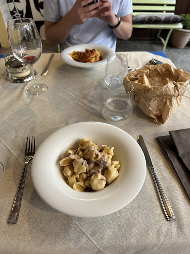 We stumbled across this restaurant quite by accident, and... Wow. There is no menu, you just had to choose meat or fish.. I chose vegetarian! It was delicious - little pasta 'bags' with cheese and pear. All pasta was handmade. Waitresses were super friendly, and all the guests outside started chatting together as if it was a a party. Quite remarkable. Best of all, it was very reasonable at €43 (for 2, including starter, mains, drinks and dessert) and worth every penny! Thank you for a...