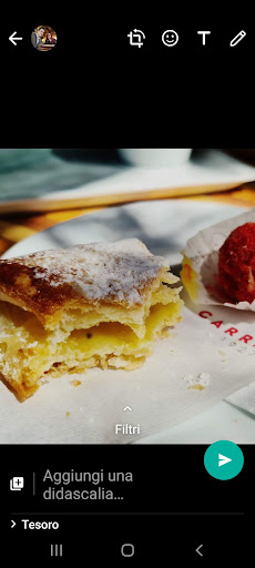 Una sfogliata alla crema CON MUFFA e una peschina all'allchermes vecchia e secca immangiabile.