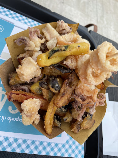Read moreIl miglior fritto mare mai mangiato in vita mia. Per la prima volta in 10 anni mio figlio lascia le patatine fritte (non toccate) e mangia la mia verdura fresca fritta. Anelli di cipolla meravigliosi. Gamberi grandi e freschi SGUSCIATI cosa che a Follonica non ho trovato (piccoli e non sgusciati) che dire tutto come ti aspetti. Dunque il mio figlio per la prima volta non ha toccato le patatine. Ringrazio prima lo staff poi il proprietario (secondo le scarpe indossate non può essere altro che il proprietario, molto belle) anche la sua mamma (credo). Gentilissi in a spiegare tutto. Consigliatissimooooooooooo. Grazie di nuovo per l'esperienza culinaria e non mollate, andando così impossibile a perdere. (25 anni in ristorazione, ora rifilatore in una famosa fabbrica di affettati. Tutto ha il suo tempo)....