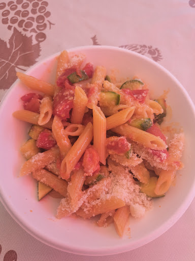 Salendo dalla spiaggia libera (circa bagno 112) , salendo diretti a 100 metri circa, si arriva a questa fantastica rosticceria dove si cucina anche al momento su richiesta e si puo consumare sul posto. Ieri sera ho chiesto salmone -non esposto. La cuoca ha avanzato diverse proposte -pasta o gnocchi al salmone - e piatto freddo con salmone affumicato su base di verdure. Detto fatto, piatto freddo preparato, manco a dirlo, squisito. Preceduto da mix di tre antipasti di pesce dalla vetrina. Oggi ho chiesto una pasta leggera con verdure senza olio. La cuoca ha proposto penne con sughetto di zucchine e pomodoro, ed ecco la foto. Poter chiedere anche fuori dal menu e vedere l'entusiasmo con il quale la cuoca si delizia di proporre piatti improvvisati, e squisiti, trovo sia un ulteriore punto a...