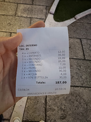 A rendere il tutto ancora più indigesto è stato il conto finale: 187 euro per un pasto che non valeva nemmeno la metà considerando la qualità e il servizio ricevuti.