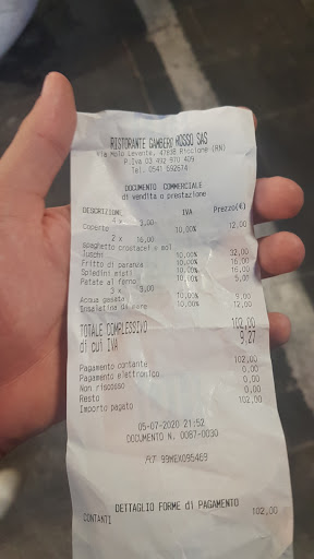 The food was delicious. The location was also top-notch. Everything else was impossible. The restaurant was almost empty. Only about 7 tables were occupied. Nevertheless, we sat there for over 2 hours, even though we placed our entire order right away. Then the waitress dropped our bread on the table. She wanted to bring more. We're still waiting today! We ordered two more Cokes! After 10 minutes, one of us went to the front. Then it worked immediately. The most disgusting behavior, however, was the obvious fraud in the billing. I paid by card. When I typed the amount into the card reader, the fraudster at the cash register simply entered 4 euros more!! What a disgrace!! Unfortunately, I didn't check this directly and only noticed it much later. But at least I can warn others about this fraudster here!! There are other restaurants right there you can go to. DO NOT go to the Gambero Rosso Riccione, they cheat their guests when paying!!!