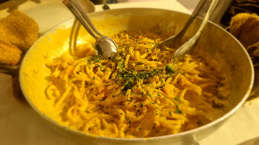 Abbiamo cenato al Ristorante Pappagallo di Riccione incuriositi dalla fama della loro "carbonara di pesce", uno dei piatti più celebrati del locale. Si tratta di una rivisitazione creativa con panna, zafferano e pesce freschissimo: un abbinamento davvero riuscito, saporito ma delicato. Abbiamo poi proseguito con spiedini di gamberi e calamari, anch’essi ottimi, ben cotti e con porzioni equilibrate. Il conto è in linea con la qualità, anche se gli spiedini hanno un prezzo un po’ più sostenuto.