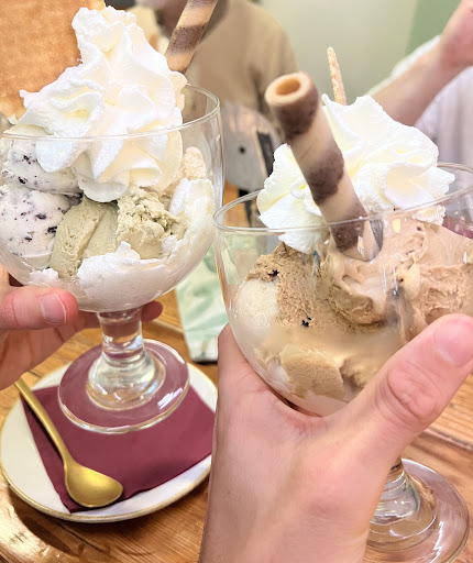 We came here on recommendation and we are so happy we did. We took a tiritasu, three gelato flavours, cream, meringue and toppings.