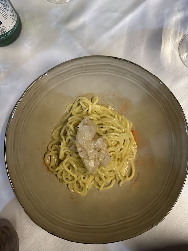 Abbiamo continuato poi con un primo “cacio e pepe con tartare di gamberi" è stato un'esplosione di sapori e un'esperienza culinaria straordinaria. Lo consiglio vivamente a chiunque voglia sperimentare una combinazione unica di sapori e ingredienti freschi in un piatto di pasta innovativo.