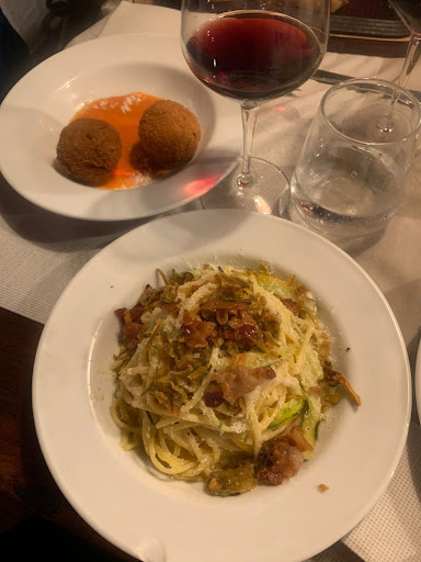Read moreCome cameriere e sommelier ve lo sconsiglio perché: per inizio ci ha portato un vino già aperto che costava un tot, servito in un bicchiere non adatto per il vino rosso, non avendo un meno ne a voce ne elettronico. Chiedendo alla cameriera di dircelo lei non sapeva spiegare i vari piatti che c'erano. In più abbiamo mangiato un antipasto dopo 40 minuti, che era scarso e non adatto al prezzo che abbiamo pagato (il prosciutto non stagionato morbido e inmasticabile) poi riguardo ai formaggi era soltanto un solo tipo di formaggio dicendoci prima che erano un misto di formaggio. Poi abbiamo aspettato il cameriere per ordinare il secondo più di un ora per riuscire ad ordinarlo, dopo un ora e arrivato la cameriera e abbiamo aspettato altri 45 min per il secondo che poi in fine non è mai arrivato, e arrivata un unica portato che era un pasta con salsicce e tartufo fresco appena grattugiato secondo le parole della cameriera, che di tartufo non aveva gusto (esso essendo sotto olio). Come cameriere e sommelier ve lo sconsiglio come locale. Per il servizio : 3 Per l'ambiente: 5.5 Per il vino:6 anche se poche scelte Grazie per aver letto...