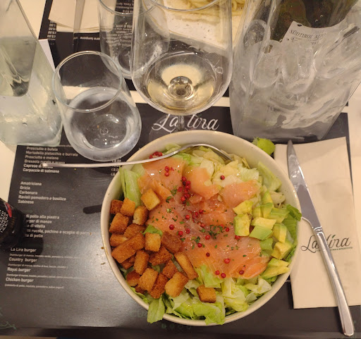 Read moreIl Gran Caffè La Lira secondo me è uno dei migliori Locali della nostra cittadina,passato per un come sempre ottimo caffè mattutino in compagnia di un collega abbiamo scoperto che ora si può anche pranzare,cosi dopo un oretta siamo tornati. Il titolare gentilissimo ci ha fatto accomodare nella bellissima veranda esterna che affaccia su Piazza Cavour,abbiamo ordinato 2 ottime e abbondanti Gricie 2 calici di vino Rosso e 2 contorni e 2 caffè totale euro 17,00 .Servizio rapido e veloce nonostante l'affollamento delle 13:00 prezzo per la qualità espressa veramente basso secondo il mio modesto parere.Locale pulito e...