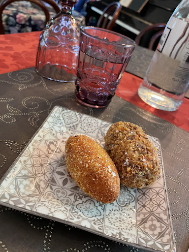 … quando ti rendi conto dell’efficacia del lavoro degli advisor L’altro giorno a Rieti x la pausa pranzo non volevamo il solito paninazzo, x cui mi accingo a cercare una bella recensione su Google Una delle prime che compare è la Palazzina, oltretutto vicinissima al ns. luogo di lavoro Chiamo x sentire e c’era posto e mi confermano la prenotazione La location ha un bel dehors con pergolato di piante, molto bello da sfruttare in una bella giornata, ma piove a dirotto, peccato! Entri ed hai l’impressione di essere andato a trovare nonna, un posto famigliare con arredi d’epoca, ma x nulla trasandato, volutamente tenuto in linea con la vetustà di gestione Il menù è abbastanza ricco, ma veniamo attratti dalla bruschetta con lardo di patanegra, non proprio a km. 0, ma molto, molto buono Poi ravioli ricotta e spinaci al pomodoro, veramente deliziosi, presentati molto bene e anche se non saltati in padella, per lasciarli nudi, erano veramente deliziosi, e fettuccine ai funghi porcini, saltati un po’ di più sarebbero stati eccellenti, ma un ottimo piatto, comunque Poi grigliata mista x tutti, cotta al punto giusto e molto succosa, cicoria ripassata e patate al forno Il tutto annaffiato da un buon Montepulciano di Orsogna Un bel dessert x chiudere il pasto, cheese cake ai frutti di bosco molto delicata e crema catalana, buona ma lo zucchero di canna non aveva fatto la sua solita, caratteristica crosticina ed era rimasto molliccio e bagnato, peccato Poi caffè e...
