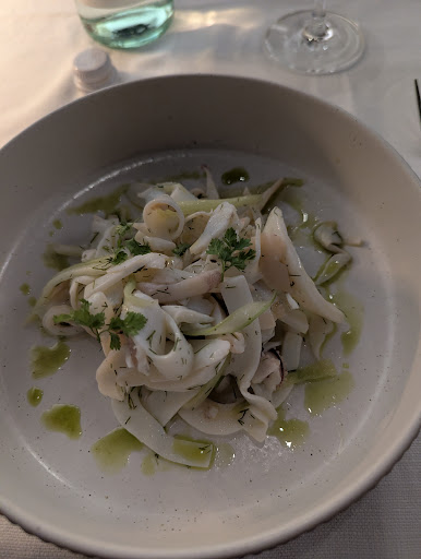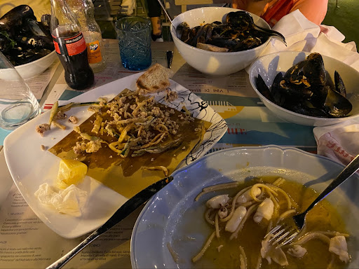 Quality of products was good. The starters, pulpo with fennel and cozze, were delicious. Instead of bread, you get piadine, which is a good choice. For the main course, I had a mixed adriatic grill. I was disappointed that it only contained fish, and all the fish had the same coating. The coating was well seasoned, but it's a bit boring to have the same taste for every fish. Also, we were not given an explanation of the different type of fish, and all the selected fish had really many and tiny bones, which makes it rather unpleasant to eat them. The gnocchi came with a tasty sauce, but they had egg shells in the dough, which shouldn't happen. Finally, the service was inattentive - we had to ask for a glass for the bottled beer, we were not given an extra plate for the mussels (the neighboring table did), and we weren't served parmesan to the pasta al ragù dish, which should be standard in Italy. So all in all, it lacked...