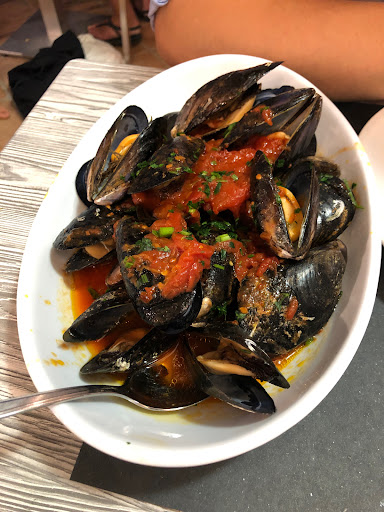 Read morePurtroppo una volta era il miglior posto a Rimini dove mangiare cozze... Sempre stata a pranzo per una volta decido di provare a cena, un totale disastro. Il vino viene dimenticato e dobbiamo ricordarlo al cameriere dopo che era già arrivata la prima porzione. Il cameriere alle prime armi fatica ad aprire la bottiglia e rovescia del vino sul tavolo (no comment). Le cozze abbiamo dovuto lasciarle lì per paura di stare male.... Non erano pulite bene e sapevano solo di sale, oltre ad essere piccole. Portano i primi e dimenticano le posate - ci siamo dovuti alzare per andarle a chiedere. I primi mediocri, purtroppo non hanno salvato la serata, terminata con una quasi rissa al tavolo di fianco al nostro. Il proprietario ci ha tolto le cozze dal conto (e questo ok) insinuando che fossimo gli unici ad essersi lamentati della qualità quella sera, eppure sono anni che vengo a mangiare da loro e il proprietario stesso ha ammesso che quest'anno le cozze non sono buone (le sue forse, e allora perché le pubblicizza con tanto di cartellone fuori?! Un ristoratore in gamba non sponsorizza/utilizza prodotti non buoni e poi si lamenta coi clienti che non apprezzano)