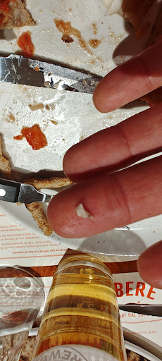 La decisione delle 2 stelle grazie alla gentilezza e al conto ridotto è venuto dal fatto che non si possono servire 8 pizze in 3 volte portando e una alla volta e l'ultimo ha iniziato dopo che il primo aveva finito, che il cibo non è un gran che, che il servizio è assente ed inesperto e cosa che non è assolutamente perdonabile se usi prodotti di qualità... Un pezzo di osso nella salsiccia.