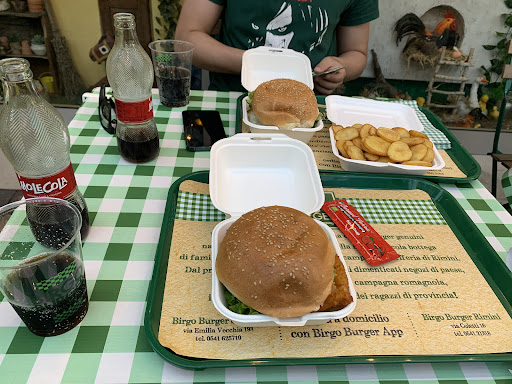 Read moreDico la verità, eravamo state attirate più da questa simpatica ambientazione di campagna che dalla catena, che ammetto per mia ignoranza, non conoscevo. Invece Birgo Burger è stata la scoperta più piacevole di questa estate! Personale gentilissimo e super disponibile, attenzione al riciclo, pagamento super moderno senza passaggio di denaro con la cassiera (sia in contanti che telematico) e ambiente come dicevo veramente carino. E il cibo? Il cibo è stato la ciliegina sulla torta! Panini giganti, carne eccellente (prima volta che mia figlia preferisce finire la carne invece del pane non riuscendo a finire un cheeseburger da adulti! 😅), prodotti di alta qualità e, ho piacevolmente scoperto in seguito, anche a km zero e con attenzione alla stagionalità! Se beccate la serata con la mascotte poi c'è praticamente compreso anche lo spettacolo, è uno spasso vederlo interagire con macchine e bici di passaggio, ha un sacco di fan! 😂 Il prezzo non è bassissimo (es.un cheeseburger costa 7,50€) ma considerando la qualità delle materie prime e il fatto che con un panino si è a posto direi che sono più che giusti. Birgo si merita...