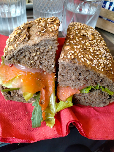 Ambiente molto carino, c’è una terrazza esterna super verde dove consumare in tranquillità, alcuni tavoloni lunghi da condividere. È proprio piacevole! Menú infinito! Tantissime proposte, dalle più elaborate al classico pane burro e marmellata (comunque imbattibile). Imbarazzante la quantità di mosche all’esterno, che infastidiscono non poco durante la consumazione. Sono rimasta shockata, però, dal fatto che il proprietario (e non un dipendente, sottolineo il proprietario!) non abbia idea di cosa di ciò che lui stesso propone, contenga glutine. Nel 2023, e dopo i corsi HCCP obbligatori per avere un locale, come non si può essere a conoscenza dei principali allergeni?! E soprattutto, non avere neanche voglia di controllare nella lista allergeni (“non ne ho la più pallida idea”, e chiusa lì). Questo denota scarsa professionalità, accompagnata da modi rudi e maleducati. Non te l’ha chiesto nessuno di lavorare con il pubblico. Ho difatti notato che la clientela che viene in questo locale è prevalentemente fissa ed i nuovi clienti sono trattati come clienti di classe B… Tornerò a prendere uno yogurt con la frutta (molto buono, consiglio) sperando di incrociare solo la ragazza al bar...