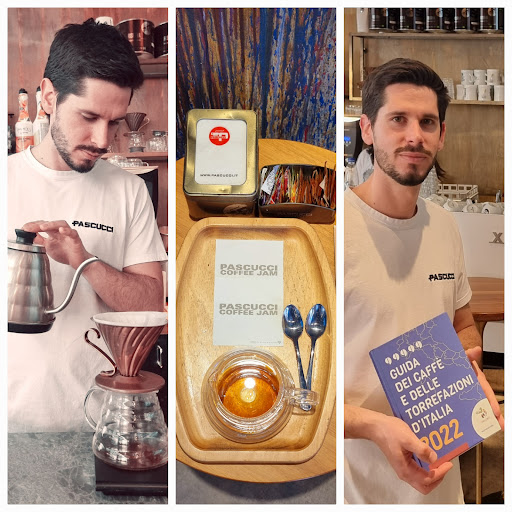 Read morePartiamo dal presupposto che in 100 metri da desta a sinistra del locale, ci sono 9 bar e quindi lo sbarco di Pascucci nel centro storico...a queste condizioni, è stato un totale fallimento dal punto di vista pratico del locale. Pascucci aveva una buona cartuccia ma non è stata sfruttata bene. Sappiamo tutti che i geometri e gli architetti non sempre riescono a coniugare, l'estetica con la praticità. Qui ne abbiamo un chiaro esempio. Il posto è angustio è minuscolo, tutto ti porta alla claustrofobia, partendo dai vassoi dove vengono appoggiati i cappuccini e i caffè, siano ai tavolini di uno striminzito da fare stare male. Il coraggio di mettere attorno ai mini tavoli 4 sedie e disarmante, noi eravamo in due e abbiamo fatto fatica (lo potete vedere dalle foto). I minuscoli tavoli sono tutti ammassati d'altra parte il posto è quello che è e abbiamo dovuto fare lo slalom scomodando le altre persone per poter passare ed arrivare al tavolino. Ci sentivamo come degli animali allo zoo, li in piena seduta di fronte al corso con queste vetrate senza una minima possibilità di privacy, e la gente che guardava mentre camminava. Detto questo andiamo alla cosa fondamentale, brioches e cappuccino. La brioches, almeno quella vuota, non era lievitata, non assolutamente all'altezza, ma ci siamo abituati visto che il Pascucci al mare usa quelle surgelate. Il cappuccino non era male, mi riservo di tornare più avanti per dare al possibilità ai baristi di prendere confidenza con il latte, e la macchina da caffè. Sicuramente il bar avrà successo a prescindere poiché i ragazzi vanno con la moda, ma se volete un posto dove stare comodi, tranquilli, per chiacchierare un po' cercate altro. Ultima annotazione, peccato non aver messo una pedana per i portatori di handicap, visto che il locale è stato fatto nuovo, ci si...