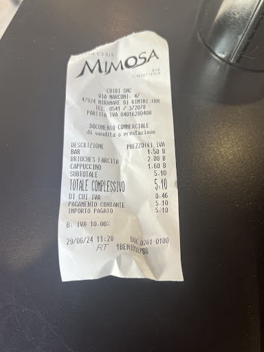 At first glance, we fell in love with the inconspicuous Mimosa Cafe after our first visit and came here every day of our stay in Rimini. Very good coffee, delicious pastries (we had croissants and the kids had donuts), super friendly service every day. Even the wines they sell here are excellent.