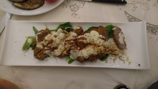 Read moreSiamo andati per la seconda volta io e il mio ragazzo e come sempre ci siamo trovati da dio! L'anno scorso eravamo andati alla divina bistecca di Forlimpopoli; mentre quest'anno siamo andati a Bertinoro perché quello di Forlimpopoli ha chiuso. Allora partendo dall'ambientazione: l'inferno sono delle specie di grotte con i muri dipinti di rosso molto molto romantico (infatti io ed il mio ragazzo abbiamo scelto un tavolo per due "nell'inferno "), successivamente c é il purgatorio che detto sinceramente non è nulla di che: le pareti color giallino pastello con su scritto purgatorio, così come il paradiso che sinceramente io preferivo quello di Forlimpopoli che era strepitoso da togliere il fiato, questo invece non mi dice nulla di che. D'estate aprono il giardino dell'eden che è meraviglioso!! (È aperto soltanto d'estate il giardino dell'Eden). Comunque appena arrivati vi faranno fare il tour per farvi decidere dove preferite stare. Appena arrivati vi offrono un bicchiere di prosecco. Io come antipasto ho preso il carpaccio di scottona con mele caramellate e scaglie di pecorino, mentre il mio ragazzo ha preso delle crocchette di patate tartufate e salsiccia con anche una melanzana fritta tutto molto buono! Non abbiamo preso il primo ma siamo salutati direttamente al secondo io avevo preso la tagliata di scottona con rosmarino, sale grosso e cipolla rossa caramellata (strepitosa sì scioglieva in bocca!); Il mio ragazzo invece ha preso: tagliata fritta aromatizzata al pesto di basilico fatto in casa, su fonduta di pecorino alle foglie di noci e pioggia di frutta secca ( io l' avevo presa la prima volta che eravamo andati li l'anno scorso buonissima!!!). Per finire in bellezza ho preso il tortino caldo con cioccolato al latte sciolto sopra e frutti di bosco congelati 😍; il mio ragazzo invece è più per le cose semplici quindi ha preso un semplice sorbetto al limone, a detta sua buono. In totale con una bottiglia d'acqua naturale, l'antipasto, il secondo e il dolce abbiamo pagato 83€ in due. Sinceramente io appena ne ho la opportunità ci torno sempre perché la carne ma alla fine tutto è stra buono e di qualità; poi mi fanno impazzire gli abbinamenti dolci che aggiungono alla carne. Detto questo lo consiglio...