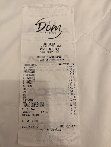 We (couple below thirty) went there for a small dinner due to the warm weather. Atmosphere is nice so we decided to try this restaurant. We got a table quickly and were seated immediately. When ordering the waiter did not take and notes and we‘re already wondering but experienced ones are on top even without notes. We ordered a starter and two main courses with a shared side. The drinks took roughly 10-15 minutes to arrive although there were only 5-10 other tables being served. First dish to arrive was the side to the main courses. The other dishes came (although we explicitily ordered one dish as a starter) all at once. The Caesar Salad went wrong all the way: wrong salad, wrong dressing, breaded chicken (which could have been an old Schnitzel sliced up) and the croutons were slices of old bread. The only thing they did not mess up was the Parmigiano.. To be fair, the starter was okay, therefore the second star. However, they charged like a fine dining spot (compared to other good restaurants here in Rimini). Let me summarize: A starter, two drinks and two salads were roughly 70 euros. Not worth the money and a tourist rip-off. Would definitely...