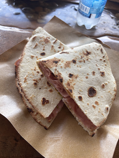 Cercavo un luogo in cui facessero in loco le piadine 🫓. La sera precedente le ho mangiate in un ristorante, buone ma non le facevano al momento loro. Ho letto le recensioni e mi ci sono fiondata qui il giorno dopo e che dire! La piadina che fanno al momento è croccante appena la addenti e gli ingredienti freschi e deliziosi. Ne ho ordinate due: la classica che è un must “ crudo, squacquerone e rucola” e poi una tipica loro “ sardoncelli, cipolla caramellata e insalata “ meravigliosa, una vera chicca per i palati più fini ( i sardoncelli sono sarde marinate). Come dolce vi consiglio la piada con la nutella. Ho comprato anche la confezione da 5 di piadine singole che mettono in una busta e che ho mangiato a casa dopo una settimana. Dieci piadine a 12 euro. Ho organizzato una cena semplicemente scaldandole in padella con un filino di olio, ho rimesso gli stessi ingredienti del locale ed ho fatto un figurone perché ovviamente sono diversissime da quella del supermercato! Allego foto della mitica piada ed anche del bagno del locale, molto particolare! Curato tutto nei minimi dettagli e molto pulito....
