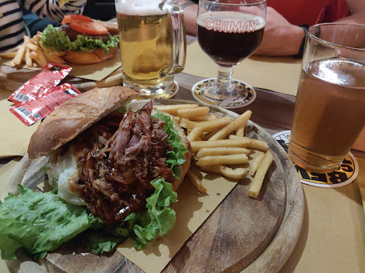 Read moreCi son già stato due volte, ha aperto da pochi mesi. L'impressione globale è più che buona, proprio all'inizio del corso di Rimini, subito dopo l'Arco d'Augusto verso Piazza Tre Martiri. Muro immenso dietro il bancone con una carellata di spinatrici di birre esposte al cliente, vedi il colore della birra stessa ancora prima che te la spinino grazie a dei tubi di vetro. Di birre ce ne saranno una ventina diverse, la maggior parte molto buone. L'ultima volta ho preso una Blanche De Namur: non era sgassata per niente (come magari uno potrebbe temere da una birra del genere non in bottiglia). Un mio amico ha preso una birra aromatizzata alla ciliegia: ovviamente un insulto alle birre, ma efficace per attirare l'attenzione dei meno esperti e più giovani. Il posto è sempre pienissimo nel weekend, c'è spesso da aspettare per sedersi. Fanno anche da mangiare, prezzi non troppo bassi ma quando vedi passare i piatti con sti grossi hamburger o coppe di tiramisù la voglia ti viene. Atmosfera da balotta, forse anche un po' troppo se uno vuole bersi una birra in tranquillità. Camerieri non organizzatissimi e che ti passano tutti i secondi dietro e davanti per poter star dietro alle richieste dell'enorme quantità di gente presente. Dopo che ti sei fatto la tua birra, però, sei subito in centro per goderti la...