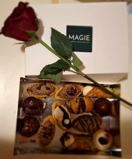 L'unica pecca è che chiude per un mese! Ma mi sono fatto una bella scorta. Gelato buonissimo, sono ghiotto di questo dolce e ho provato davvero tutte le gelaterie che ho visto a Rimini e non solo. Questo è davvero superiore in tutto. Sono entrato con diffidenza, non conoscendo la storia delle Magie, ma ogni gusto che ho provato mi ha fatto trovare questo gelato superiore in consistenza, sapore e leggerezza. E allora ho chiesto quale fosse il segreti e scopro che si tratta di gelataio che producono questi capolavori da ormai 25 anni, deliziato i palati di altre città italiane e non. Dopo tanti anni mamma MArzia, con le figlie Giulia, Isabella ed Elena, da qui il nome MAGIE,hanno deciso di regalare aRimini, la loro città di origine e di residenza, la perfezione di questo gelato,frutto di tanta esperienza. Le torte che poi ho fatto fare hanno sempre ottenuto grande riscontro e mi hanno sempre fatto fare un figurone.Mi sono dilungato enon sono solito recensire, ma questa volta non potevo esimermi. Attenderò dicembre quando queste artiste torneranno a fare le loro Magie. COMPMIMENTONI E...