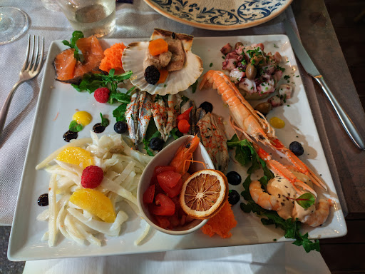 Consiglio di scegliere 1 solo piatto cosi da non rimanere fregati col prezzo. Camerieri abbastanza cordiali ma poco professionali dato che qualsiasi piatto che ci è stato servito non è stato minimamente spiegato e dato che sul menù non ci sono specifiche di composizione non sapevano cosa stavamo mangiando,oltretutto siamo stati schizzati con acqua nel mentre che il cameriere prendeva le aragoste per un ordine dal acquario posizionato di fianco al nostro tavolo.