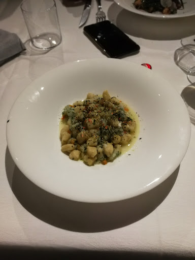 Primi piatti un vero plus, lo spaghetto con crema piselli gallinella e gamberi molto buono e gradevole, mentre menzione d'onore per la mezza manica Mancini con acqua di pomorodo e tartare. Sapore dolce, fresco, con la nota di basilico a chiudere un vero ottimo primo piatto. Segnalo anche che i primi piatti sono sufficientemente abbondanti.