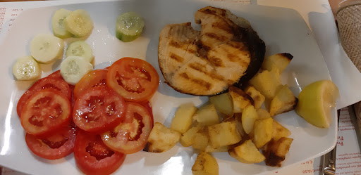 Read morePurtroppo non mi sento di consigliare questo ristorante a chi ama il cibo italiano. Se non fosse stato per la cordialità e la simpatia del cameriere che ci ha servito, il punteggio sarebbe stato ancora più basso. L'ambiente non è particolarmente curato ma neanche trascurato, mentre si sente la mancanza totale di organizzazione: abbiamo atteso 35 minuti per ricevere l'antipasto, che poi è arrivato insieme al piatto principale. Arriviamo ai piatti in se': l'antipasto di polpetti era troppo salato ed un po' spoglio, ovvero era un piatto di sugo accompagnato da alcuni polpetti ed una manciata di olive. Il salmone (piatto "estate") era decisamente secco, forse vecchio e sicuramente troppo cotto, ed era accompagnato da patate al forno crude al 70%. Indefinibili gli spiedini di pesce: c'era una panatura (praticamente cruda) anche se poi gli spiedini erano stati cotti alla piastra; di sicuro il pesce era congelato...che peccato in un posto di mare. In assoluto i prezzi non sono stati alti, ma relativamente alla qualità che abbiamo mangiato, abbiamo...