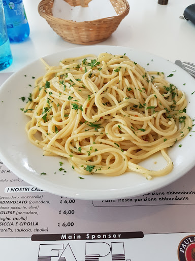 A pranzo in questo ristorantino sulla statale Adriatica meta da decenni di camionisti affamati con stomaci da riempire a basso costo con il motto poca spesa molta resa. Invece sono rimasto soddisfatto sia del locale molto carino moderno e ben arredato, accogliente. Il servizio solerte e spigliato con due ragazze molto in gamba giovani, carine e capaci. Ho mangiato il menu di carne al fantastico costo di 12, 50euro. Come primo sedanini che poi sono maccheroncini all'amatriciana succulenti e deliziosi, unica pecca un piatto di limitate proporzioni non degno della fama di sfama__camionisti del locale, come secondo una grande bistecca veramente buona cotta a puntino con sale e rosmarino succosa e saporita da 10 come voto. I contorni addirittura tre,,, patate al forno squisite, insalata e verza rossa tutti di qualità, un bel piattone in cui quantità e qualità andavano a braccetto. Da bere un quarto di vino rosso acqua e caffè buono. Sono rimasto piacevolmente colpito da questo posto non lontano dalla italia in miniatura a rimini nord e presto tornerò a provare la pizza che si dice sia buonissima o il menu di pesce a 13, 50 euro che è la vera scommessa da provare. Al momento comunque lo consiglio con 12 ,50 euro a pranzo ne vale veramente la pena. Ah dimenticavo,finalmente un ristorante che non fa' pagare il coperto che io aborro totalmente, e lo scrive chiaramente sul menu', bravi...